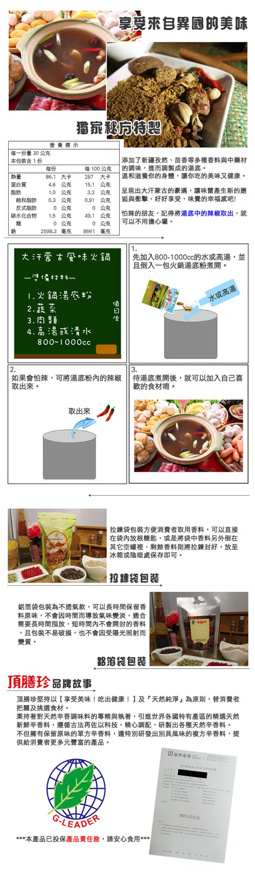 4.大汗蒙古鍋全程由台灣生產調製(工廠字號99-689682-00)。